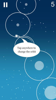 试着尽可能在多的轨道上。我们需要控制小圆球在不同的圆圈中切换跳跃!