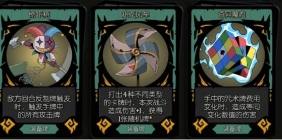 小魔术师有三种强力装备,分别是惊吓箱、扑克风车和奇异魔方,这也基本对应了三种不同的卡组构筑
