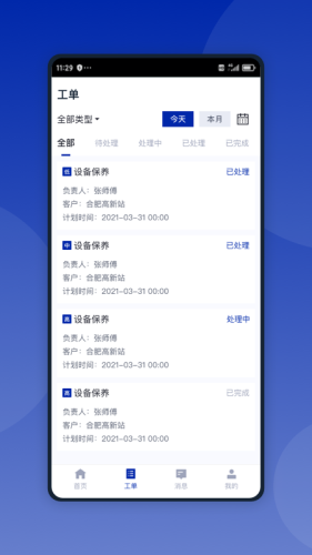 3.在智能换电运维app中,所有的工单订单信息都是完善整齐的记录在软件列表中的,可以让维修工人快速的浏览所有的订单信息,进行处理。