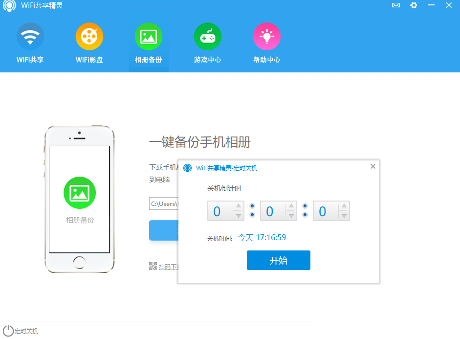 2、影盘功能:该功能可以让手机观看电脑上的影片、视频文件。扫描软件界面上的二维码下载WIFI上网精灵,启动影盘,选择有资源的电影文件夹,手机打开WIFI上网精灵连接开启成功的免费WIFI热点,在手机上就可以看片了,共享更简单。