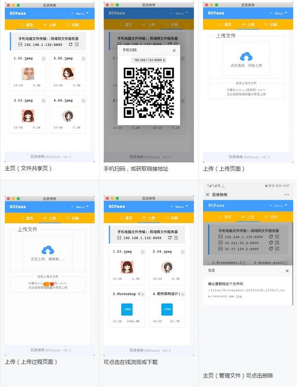 1、移动端(安卓/苹果/平板等)无需安装软件,只用扫描二维码/输入地址即可传输。