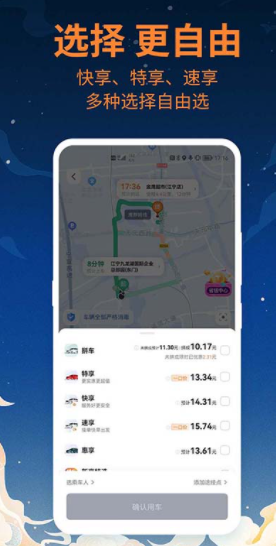 一键同时呼叫快车、出租车,分秒应答,快速接驾。