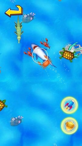 3、有各种类型的大鱼小鱼,还有道具可以选择,玩家可以根据自己的喜好来玩。
