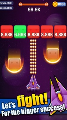 飞行破砖是一款趣味性十足的休闲益智类型的游戏,广大玩家在游戏里面需要驾驶着提供的战机并去到赛道里展开激烈的射击,通过移动的方式把提供的方块都击碎,你还要随时的注意方块当前的位置还有角度,然后还要时刻调整状态,完成挑战。
