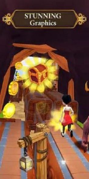 1、指挥一个长头发女孩不断奔跑,躲避的各种障碍物,努力继续跑酷;