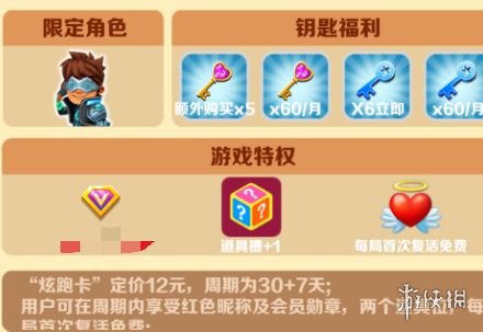 炫跑卡不仅每月能提供66个钥匙和60个宝物钥匙,更重要的炫跑卡能够多出一个道具槽位,避免拿到好道具却因为释放时机问题,被迫丢掉或者主动跳过新道具的尴尬情况。