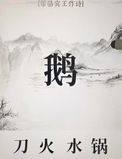 2、然后我们将鹅的鸟字拉长再使用刀将鸟字割断,这是诗句的第二句。