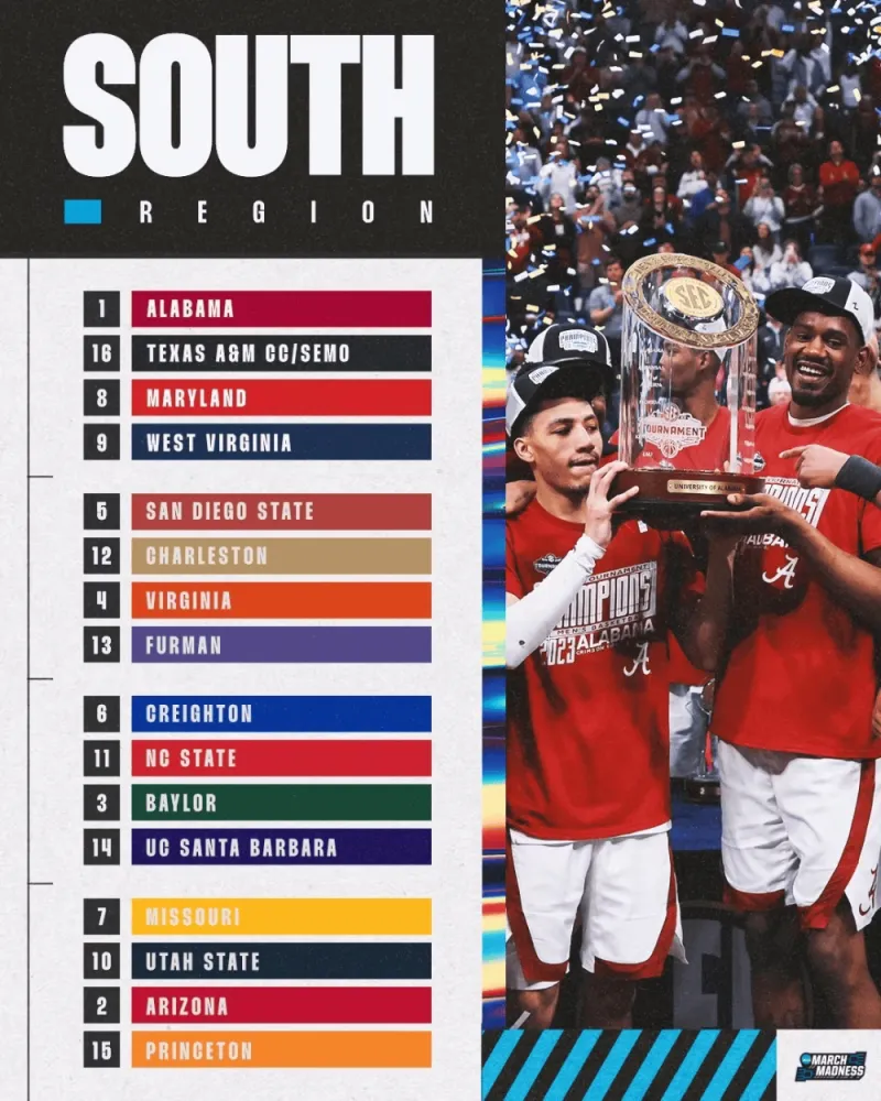 以下是东、西、南和中西区四大赛区的首轮对阵情况以及各赛区的种子选手: