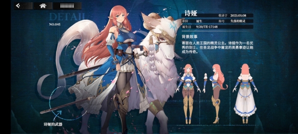 背景故事:寄居在人类王国的精灵公主。诗娅作为一名优秀的剑士,在圣龙战争中屠龙的英勇事迹让她成为传奇。
