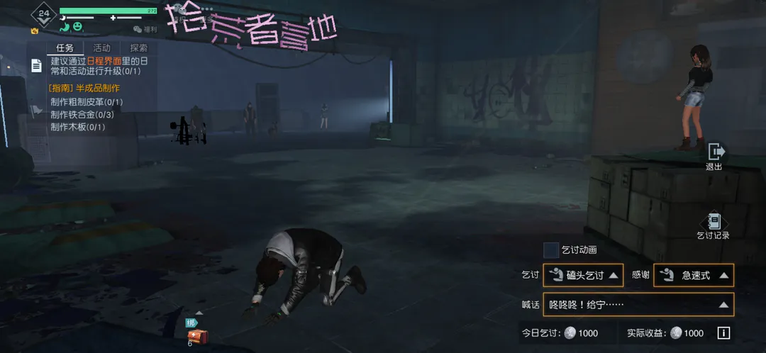 3、玩家可以通过拾荒者这个身份的任务,通过提升等级,然后来得到这个拾荒者的乞讨纸板,然后在背包里面,可以进行使用。接着你的角色就会进入乞讨状态了,别人看到了如果好心,就可以施舍你一点。