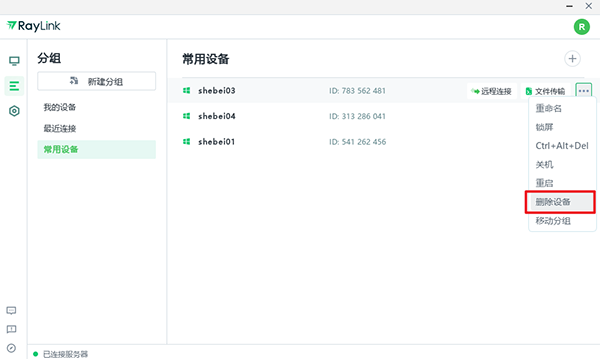 3、当某个设备无远控需求时可删除该设备,选择设备右键单击选择删除