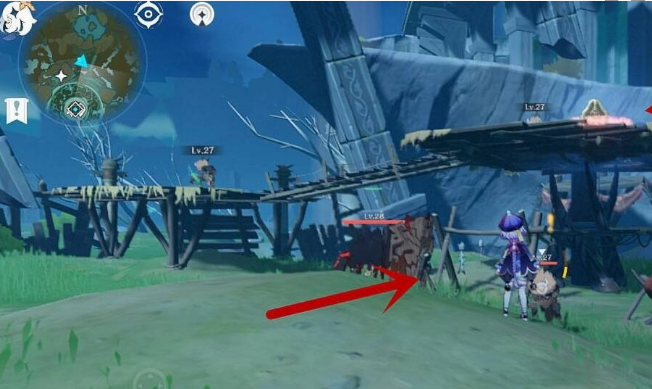 2、到达后,按照箭头指引来到一个丘丘人营地。