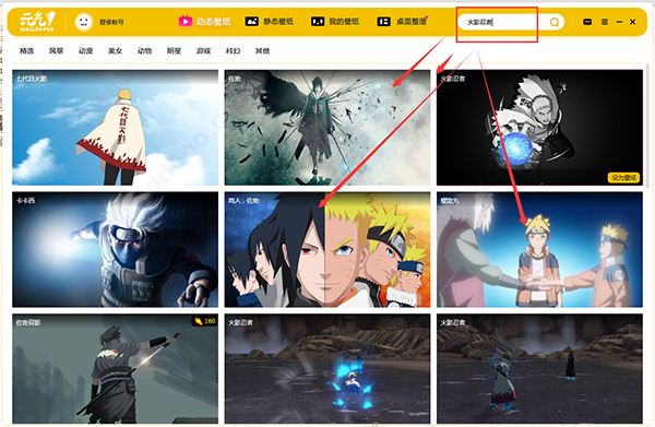 3、还可以搜索你喜欢的壁纸关键词,例如搜索火影忍者: