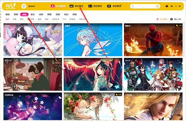 2、还可以根据你喜欢的分类去设置壁纸,分类分为大分类和小分类,大分类为:动态壁纸,静态壁纸;小分类为:精选、风景、动漫、美女、动物、明星、游戏、科幻和其他等,小分类中还有更小的分类就不一一列举了。